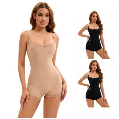 INSPIRE CHIC Women's V-Neck Tummy Control Body Suit Sleeveless Floral Lace Body Shapers 2 Packs