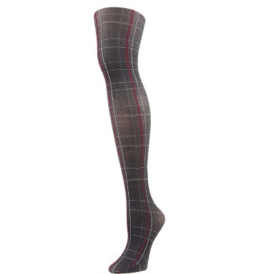 Memoi Women's Pretty in Plaid Opaque Nylon Tights Dark Gray S-M