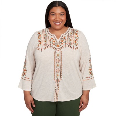 Alfred Dunner Womens Plus-Size Center Embellished V-Neck Top , Stone , Size 1X