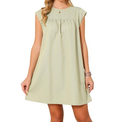 INSPIRE CHIC Women's Summer Cap Sleeve Crew Neck Casual Ruched Tunic A-Line Mini Dresses