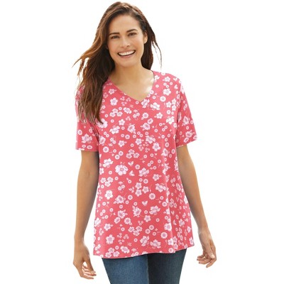 Woman Within Perfect Printed Short-Sleeve V-Neck Tee