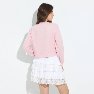 Women's Lace Trim V-Neck Cardigan Sweater - Wild Fable™