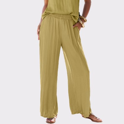 Women's Wide Leg Graphic Pants - Brown Gingham
