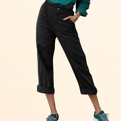 Clearlove Womens Summer Pants Cuffed Ankle Pants Lightweight High Rise Textured Pants with Pockets Summer Trousers