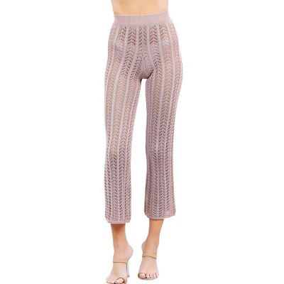 Slickblue Chic Flare Long Fishnet Pants – Blush/Khaki – Women's S/M/L – Comfortable & Trendy Casual to Dressy Style