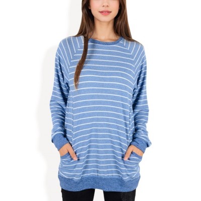 Anna-Kaci Women's Long Sleeve Striped Pullover with Front Pockets and Contrast Cuffs