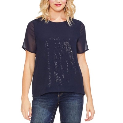 Vince Camuto Womens Chiffon Overlay Pullover Blouse