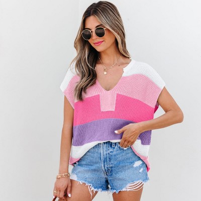 Khaki Cable Knit Colorblock Crew Neck Drop Shoulder Sweater