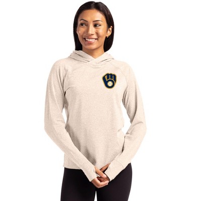 Milwaukee Brewers Cutter & Buck Adapt Knit Recycled Womens Heathered Hooded Pullover