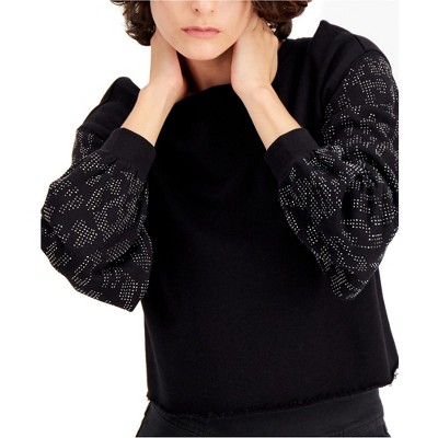 I.N.C International Concepts Womens Embellished-Sleeve Pullover Sweatshirt, black, XX-Large