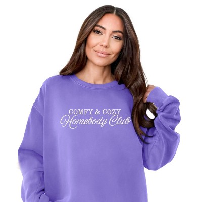 Embroidered Comfy & Cozy Homebody Club - Women's Garment Dyed Graphic Sweatshirt