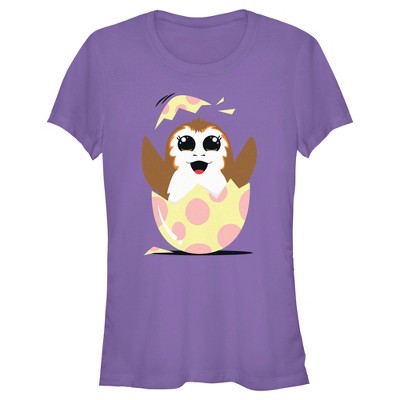 Juniors Womens Star Wars Happy Easter Egg Porg Style T-Shirt