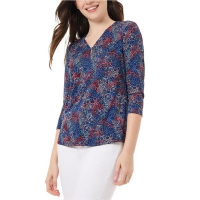 Alfred Dunner Women's Lemon Tile Knotted Crew Neck Top