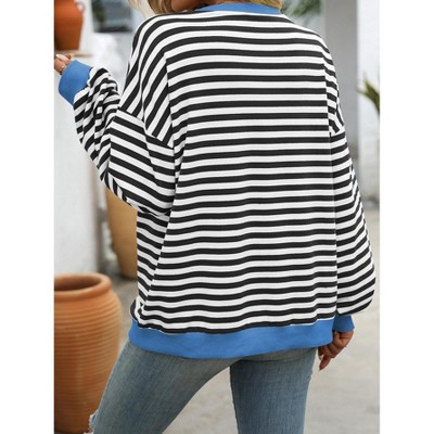 Womens Striped Oversized Sweatshirt Casual Crew Neck Long Sleeve Color Block Stripes Loose Pullover Workout Top Clothes
