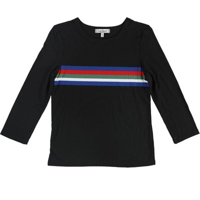 Crave Fame Womens Ribbed Chest Stripes Basic T-Shirt