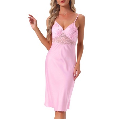 INSPIRE CHIC Silky Satin Adjustable Spaghetti Straps See Through Lace Midi Length Nightgown
