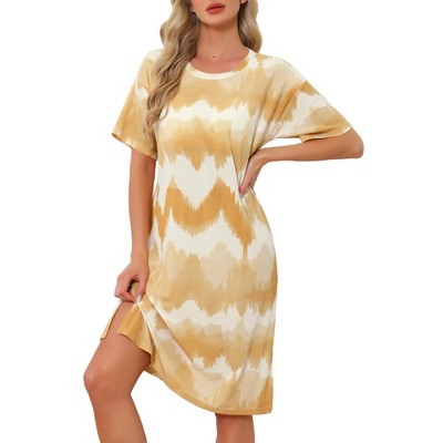 INSPIRE CHIC Women's Striped Nightshirt Round Neck Pajama Nightgown Short Sleeve Summer Shirt Night Dress