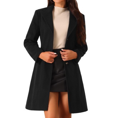Seta T Women's Single-Breasted Notched Lapel Fully Lined Winter Peacoat Black X-Large