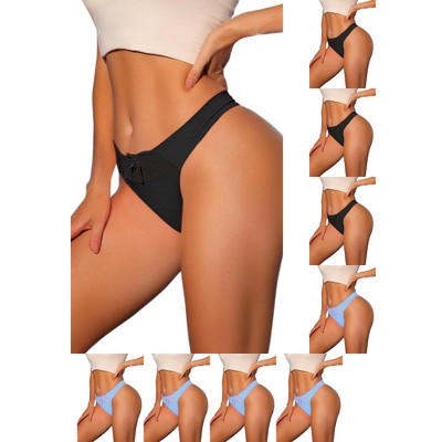 INSPIRE CHIC Women's Low-Waisted Smooth Elastic Lace Waist Solid Thongs 9 Packs