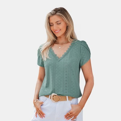 Women's Breezy Lace-Trimmed Sage Green Top - Cupshe
