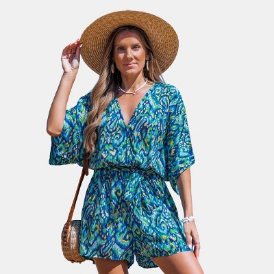 Women's Tropical Floral Print Batwing Sleeve Rompers - Cupshe