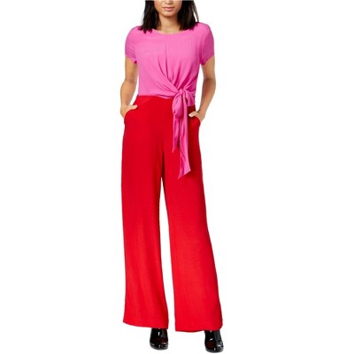 maison Jules Womens Colorblocked Tie-Front Jumpsuit