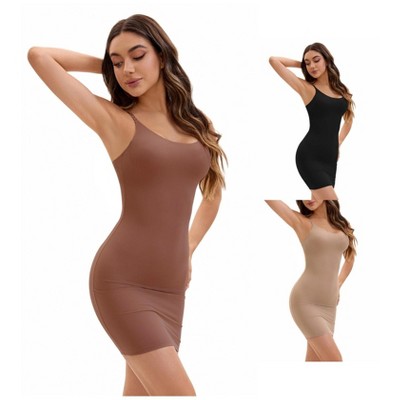 INSPIRE CHIC Women's 3 Packs Adjustable Spaghetti Strap Cami Full Slips Tummy Control Under Dress Nightwear