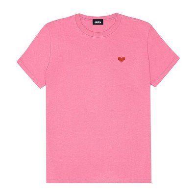 Dalix Pixel Heart Embroidered Lightweight Relaxed Jersey Tee Summer Cute Love Womens