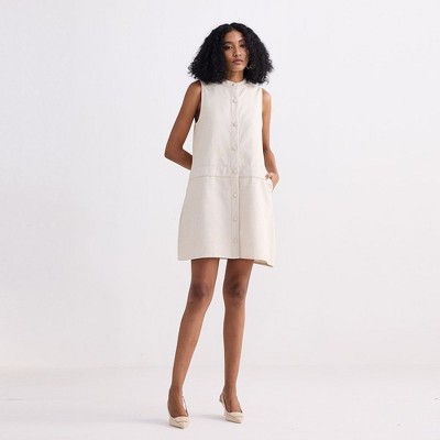 Reistor Womens The Cotton Tweed Shift Dress in Cream