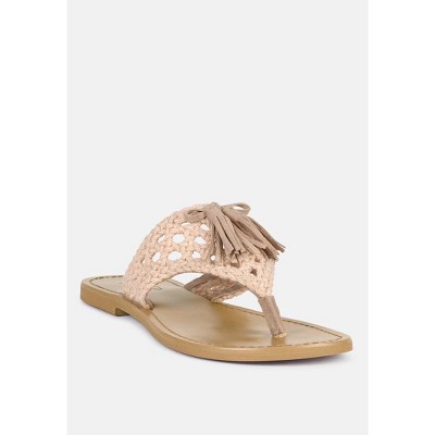 Cedar Handwoven Natural Tassel Flats