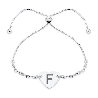 Bling Jewelry Script or Block Letter A-Z Initial Monogram Heart ID Bracelet Sterling Silver