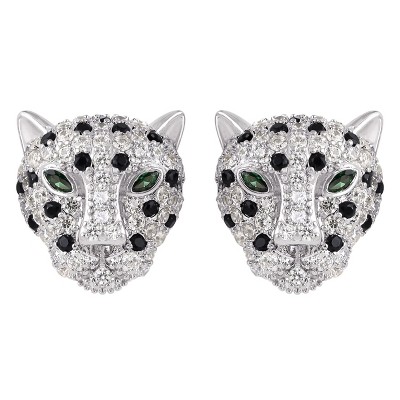 Alilang Gold Plated Leopard Cheetah Panther Head Animal Zircon 925 Sterling Silver Stud Earrings for Women