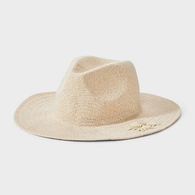 Straw Knit Fedora with Flower Embroidery Detail - Universal Thread™ Natural