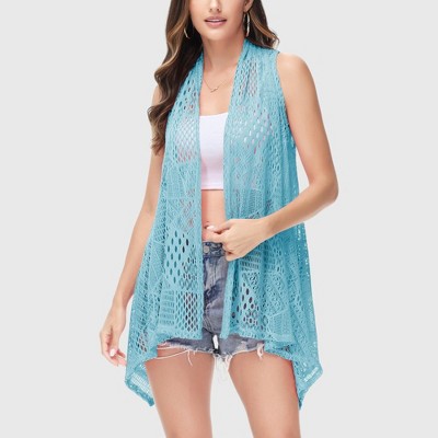 Anna-Kaci Women's Sleeveless Open Front Crochet Shawl Cardigan Bikini Cover Up