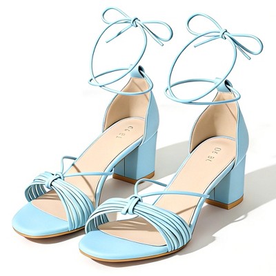 BLISSFUL STEP Flower Lace Up Strappy Chunky High Heel Sandals for Women
