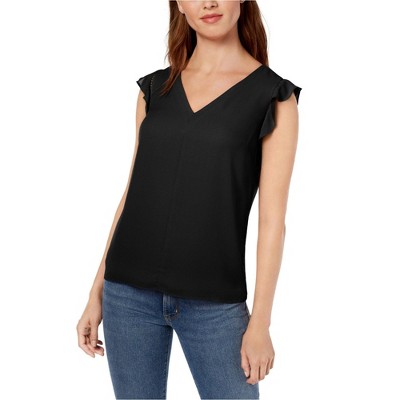 maison Jules Womens Flutter Sleeve Ruffled Blouse