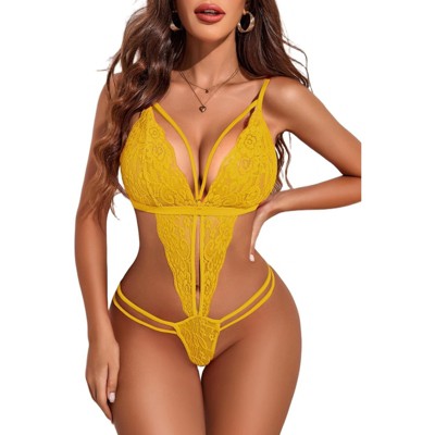 Clotth Women's Deep V Lace Teddy Bodysuit - Exquisite One Piece Lingerie, Babydoll Teddy Underwear