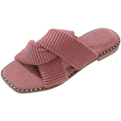 ROXONI Women's Soft Open Toe Slide Slippers, Indoor Outdoor Rubber Sole