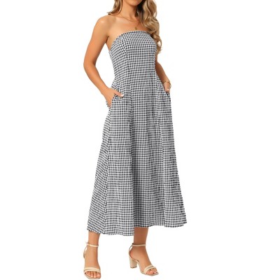 Allegra K Women's Summer Floral Tie Shoulder Smocked Spaghetti Strap Sundresses