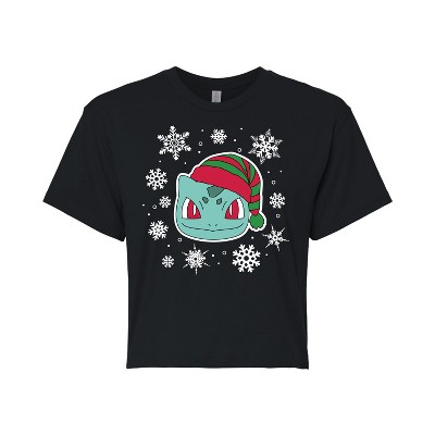 Women's - Pokémon - Bulbasaur Snowflakes Cropped Graphic T-Shirt