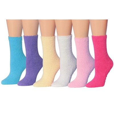 Tipi Toe Women's 6 Pairs Cozy Microfiber Anti-Skid Wild Comfort Patterned Colored Soft Fuzzy Ankle Slipper Socks