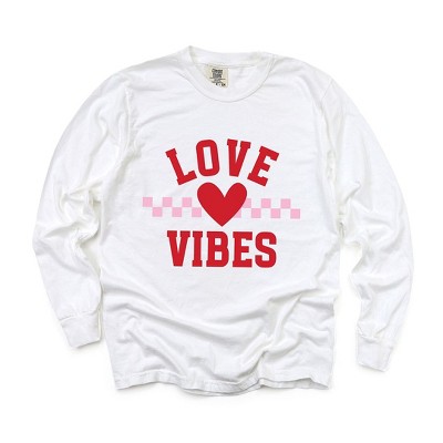 Simply Sage Market Women's Love Vibes Heart Checkered Long Sleeve Garment Dyed Tee