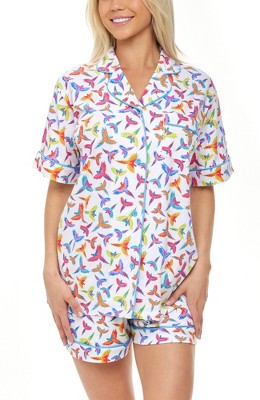 ADR Women's Soft Cotton Knit Jersey Pajamas Lounge Set, Short Sleeve Top and Shorts with Pockets