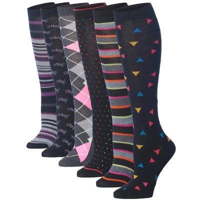 Tipi Toe Womens 6 Pairs Colorful Argyle Geometric Patterned Knee High Socks