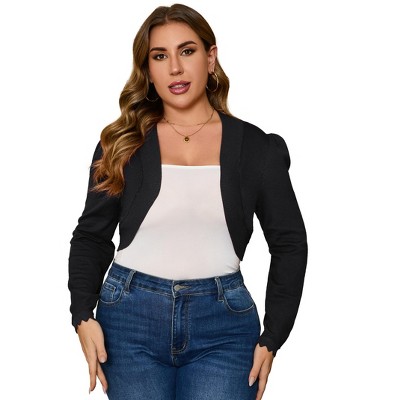 Women's Plus Size Cropped Cardigan Lightweight Hollow Out Long Sleeves Crochet Summer Short Shrugs Cardigan Sweater