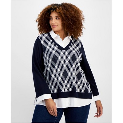Tommy Hilfiger Womens Plaid Twofer Pullover Sweater
