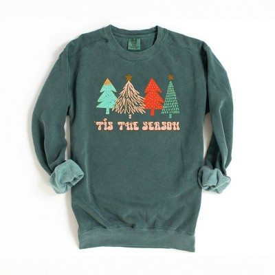 Simply Sage Market Women's Garment Dyed Graphic Sweatshirt Tis The Season Trees Grunge