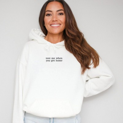 Embroidered Text Me When You Get Home - Women's Graphic Hoodie