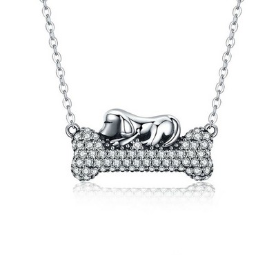 Fido Dog and Bone Necklace for Women Pendant and Chain Cubic Zirconia Ginger Lyne Collection
