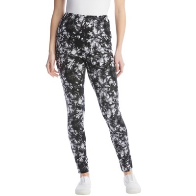 Woman Within Stretch-Cotton Knit Pull-On Printed Leggings